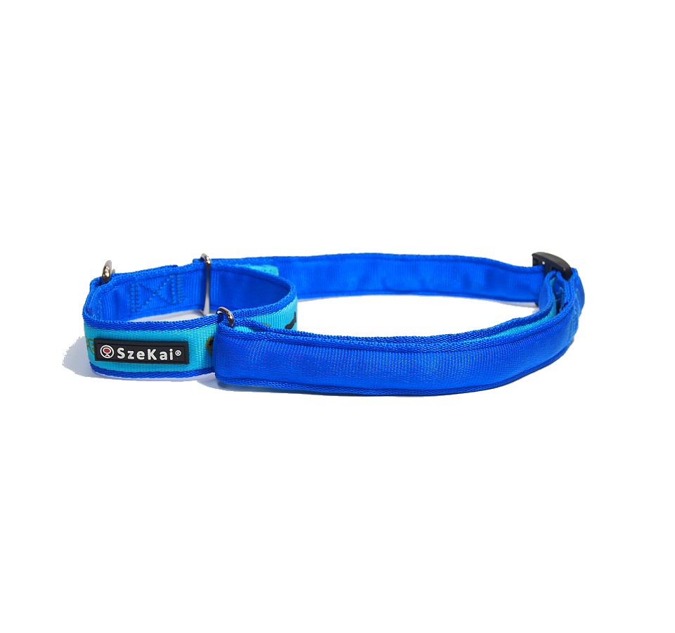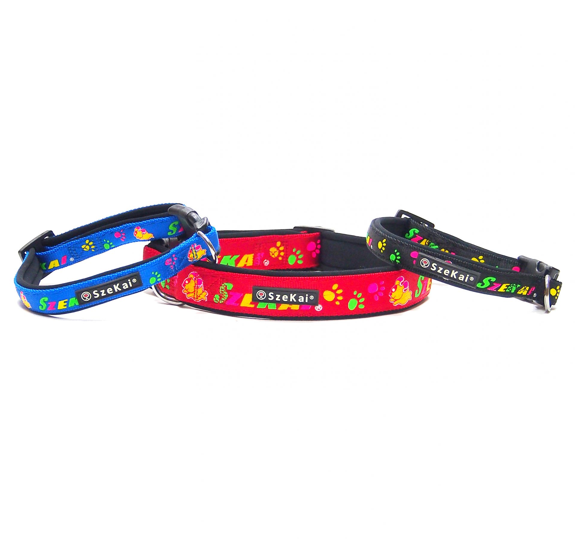 立體印刷海綿項圈轉印高級尼龍頸圈-腳印螢光立體轉印頂級尼龍頸圈-腳印螢光立體轉印頂級尼龍頸圈-Szekai頂级頭層皮頸圈-藍/粉紅水鑽