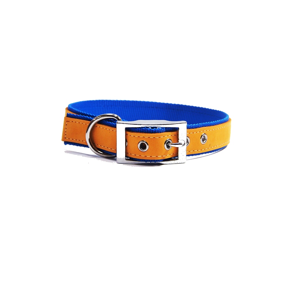 立體印刷海綿項圈頂級頭層皮尼龍頸圈-寶藍