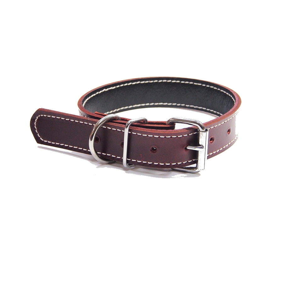 人造皮頸圈-黑高級雙層牛皮頸圈-D環