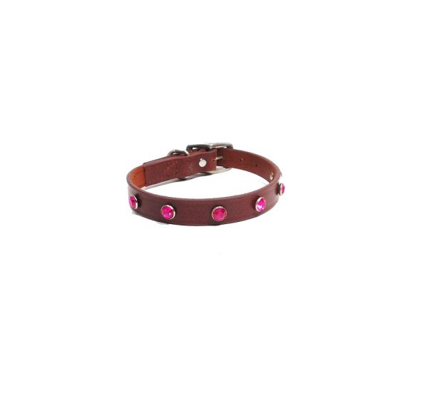 頂级頭層皮頸圈-咖啡/紅水鑽