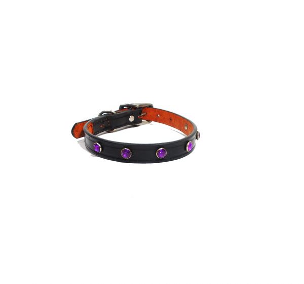 頂级頭層皮頸圈-黑/紫水鑽