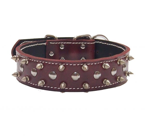Double Layer Leather CollarDouble-Layer Full-Grain Rhinestone Dog Collar